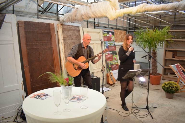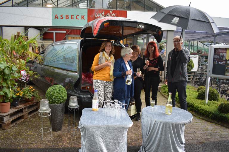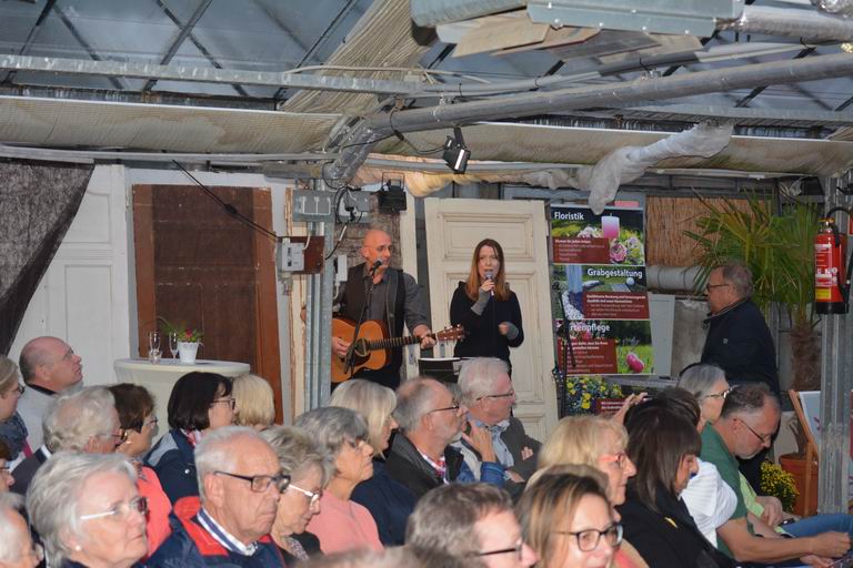 Für die gute Musik an dem Abend sorgte die Band „Easy come, easy go“, bestehend aus Vera Hoffmann und Christoph „Slidin'“ John. Die Zuschauer wurden begrüßt mit einem kleinen Drink, stilecht serviert aus einem Leichenwagen des Bestattungshauses Bertelt.